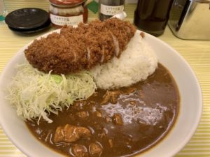 一見シンプルなカツカレーにキャベツの千切りが一山…とんかつ定食とカツカレーの中間を狙ったのでしょうか?となると、個人的には味噌汁も欲しくなるところですが…