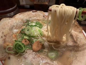 まずスープを一口すすってみると、思っていたよりかなりさっぱりしたスープでした。かと言って薄味でもなく、しっかり味がついている…何となく関西うどんだしを連想してしまいます。