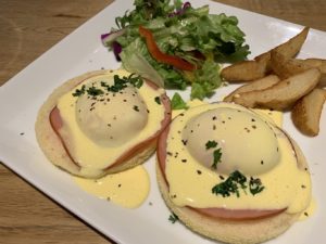 エッグベネディクト:ぷるぷるトロトロの卵とオランデーズソースでマフィンを食す、マカロニのモーニング最上位メニュー