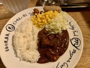 では、実食!ねっとりしたカレールーが舌に絡みつき、最初に酸味、少し遅れてかすかな苦味を口の中に広げます。このルーのほとんどが野菜と果物なだけあって、辛さはほとんどありません。漢方くささもなくて、誰でも気軽に食べられる味になっていると思います。